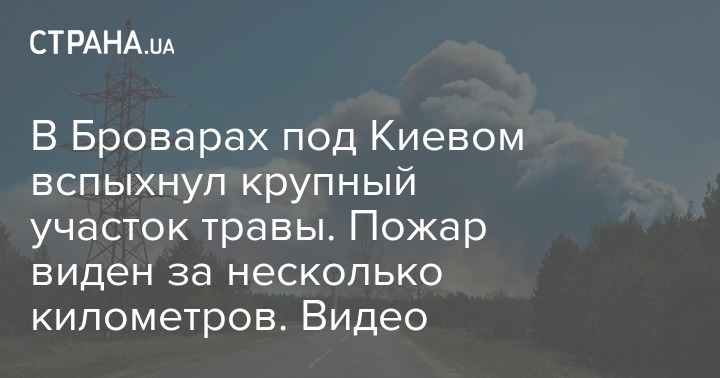 В Броварах под Киевом вспыхнул крупный участок травы. Пожар виден за несколько километров. Видео