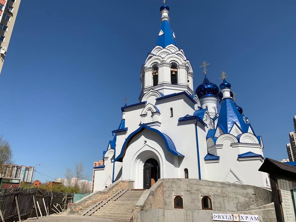 Храм святых новомучеников и исповедников Русских, был уже закрыт, но сегодня работал. В 07:00 в нем провели богослужение в связи с празднованием Вербного воскресения.
