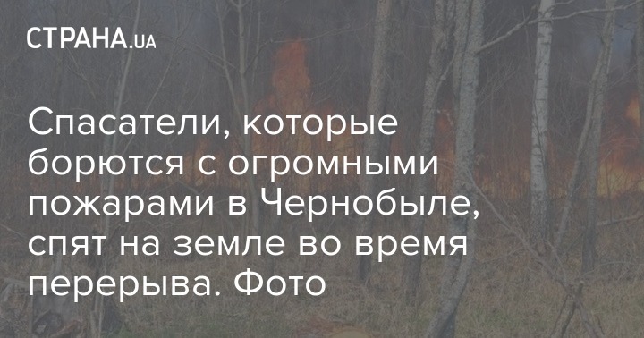 Пользователей сети поразила фотография спасателей Государственной службы по ЧС. Они тушат пожар в Чернобыле в лесу на территоории зоны отчуждения и спят прямо на земле в перерыве между работой.
