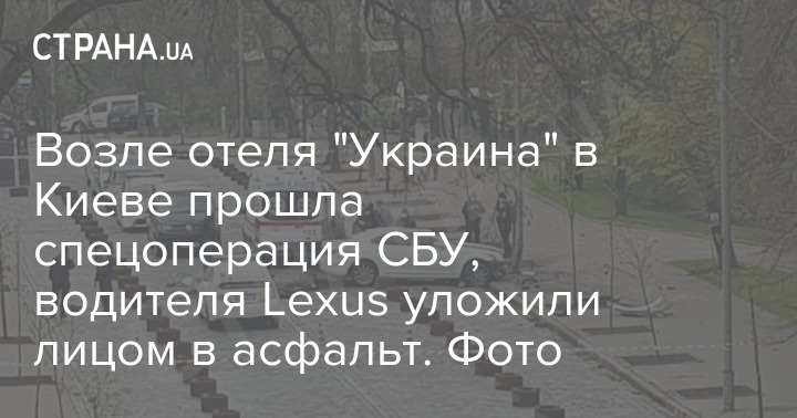 Также на Институтской стоял бус, в котором находились люди в форме с надписью СБУ. Потом водитель Lexus LS 460 не справился с управлением и врезался в столб. К машине подбежали полицейские и сбушники. Водителя - мужчину лет 45 в костюме, уложили на землю.
