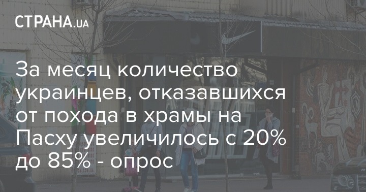 85% украинцев не планируют идти в церковь на Пасху, всего месяц назад отказаться от посещения праздничных богослужений планировали всего 20% жителей страны.