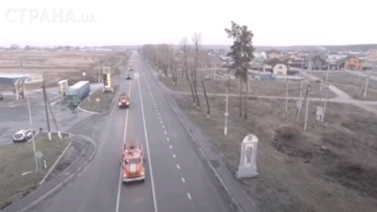 В окрестностях зоны отчуждения Чернобыльской атомной электростанция была замечена колонна пожарных автомобилей с днепровскими номерными знаками.