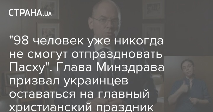 "Мы вынуждены на некоторое время быть разобщенными физически, но не духовно. Молитва, семья, любовь к близким, вера - то, чего никто и ничто не может лишить. На момент записи этого видео нам известно, что из-за коронавируса в Украине 1248 проведут этот праздник в больнице, а 98 уже никогда не смогут отпраздновать Пасху". - констатировал глава МОЗ.