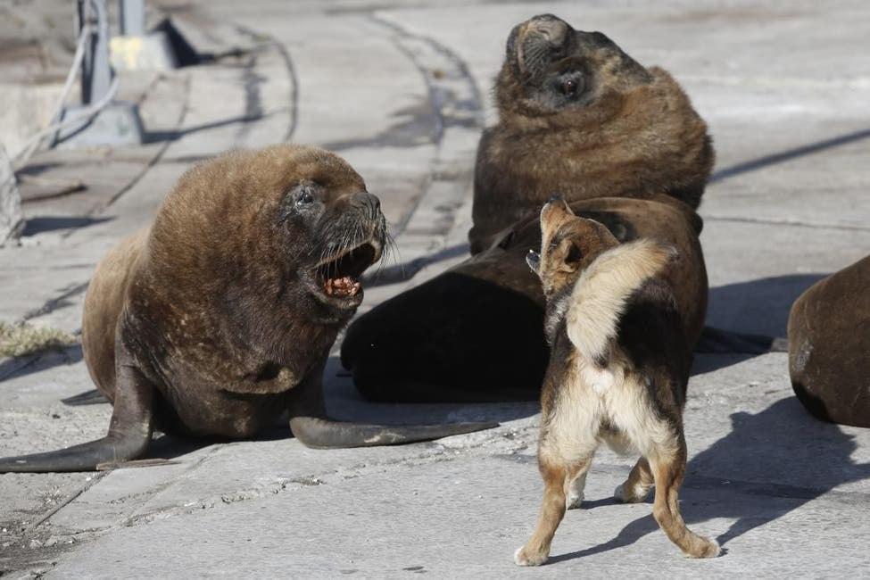 Морские львы обитают недалеко от города, но сейчас они осваивают новые территории. Животные рычат на собак, пытаются укусить горожан и перекрывают проезжую часть.