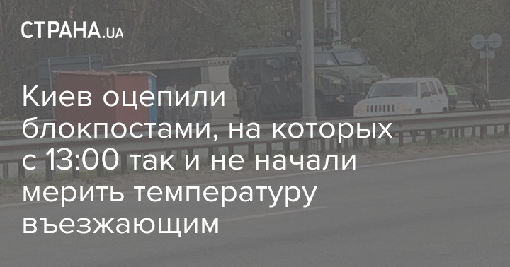 На въезде в Киев, где сегодня установили с десяток специальных блокпостов с броневиками и полицейскими с автоматами, по состоянию на 13:00 так и не начали тотально измерять температуру у всех въезжающих по решению КГГА.