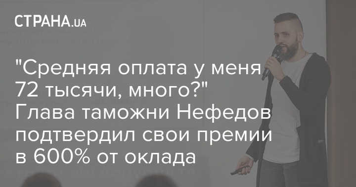 Глава Государственной таможенной службы Украины Максим Нефедов подтвердил информацию о получении премии в 600% от размера оклада.