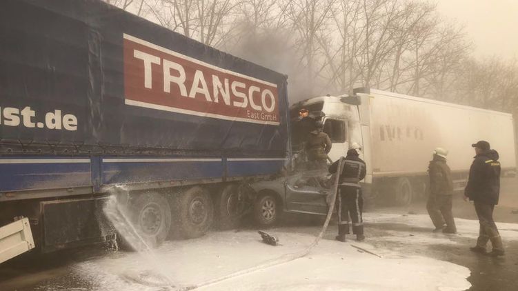 Под Киевом столкнулись четыре грузовика и два легковых автомобиля. В ДТП погибли четыре человека, еще один участник аварии пострадал.