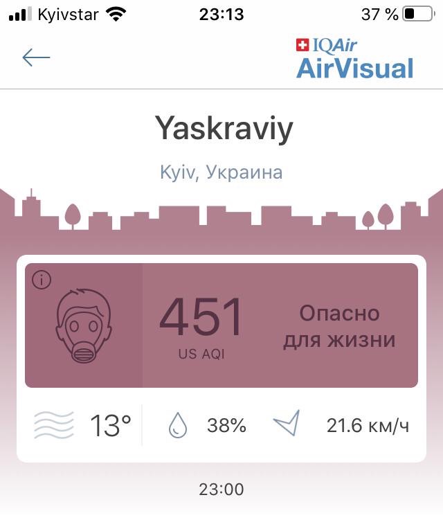 Индекс качества воздуха достигает 300-400 единиц. Это угрожающий показатель: в других городах Украины он редко превышает 60.