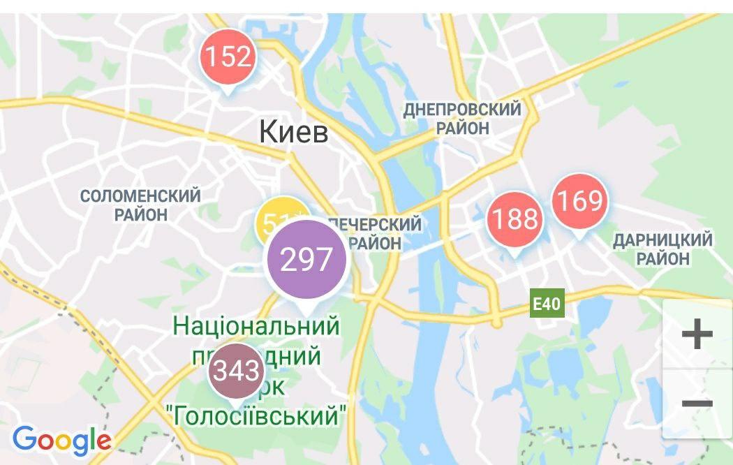 Правда, как следует из карты, не везде индекс столь высок. На Левом берегу ситуация полегче. А хуже всего - индекс 343 - в районе Голосеево.
