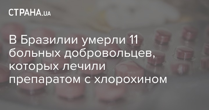 Бразильские ученые прекратили испытания противомалярийного препарата с хлорохином, которым лечат больных коронавирусом украинцев, из-за смерти 11 участников эксперимента. Это - восьмая часть всех, на ком испытывали этот препарат.
