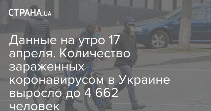 По данным ЦОЗ, по состоянию на 09:00 17 апреля в Украине 4 662 лабораторно подтвержденных случаях Covid-19, из них 125 летальных, 246 пациентов выздоровели. За сутки зафиксирован 501 новый случай.