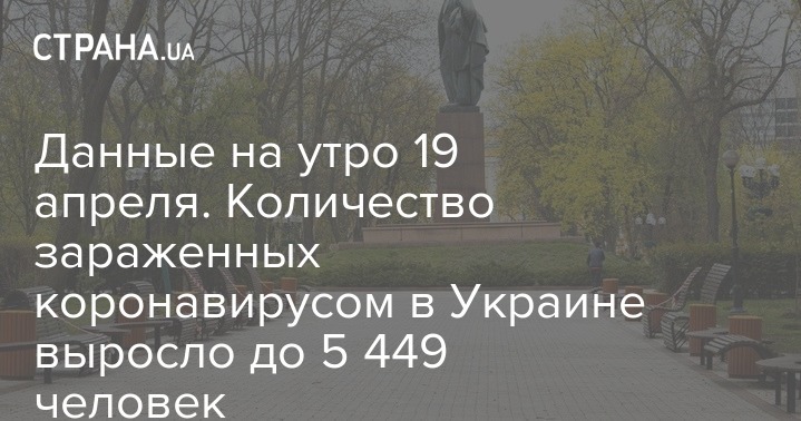 Данные на утро 19 апреля. Количество зараженных коронавирусом в Украине выросло до 5 449 человек