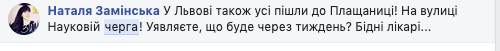 "Во Львове тоже все пошли к Плащанице, была очередь на улице Научной (церковь Животворящого Креста Господнего УГКЦ - Ред.). Представляете, что будет через неделю? Бедные врачи", - пишет в Facebook львовянка Наталия Заминская.