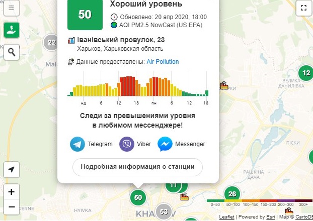 По состоянию на вечер 20 апреля качество воздуха в Киеве и Харькове восстановилось до приемлемых значений.