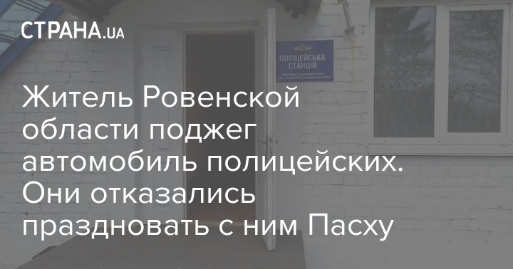 В Ровенской области житель Старого Села предложил полицейским вместе отпраздновать Пасху. Получив отказ он попытался сжечь их служебный автомобиль. Один правоохранитель при этом получил ожог ноги.