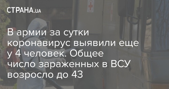 По состоянию на утро среды, 22 апреля, в Вооруженных силах Украины зафиксировали уже 43 случая инфицирования коронавирусом. Из них четыре - в течение прошлых суток.