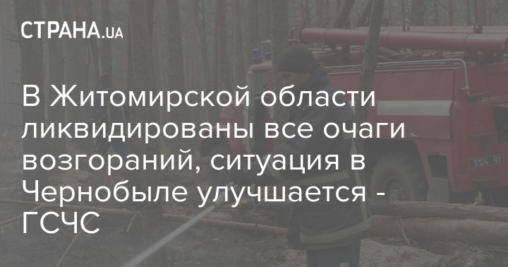 По состоянию на утро среды, 22 апреля, в лесах Житомирской области ликвидированы все очаги возгораний. Ситуация с пожарами в Зоне отчуждения также постепенно улучшается.