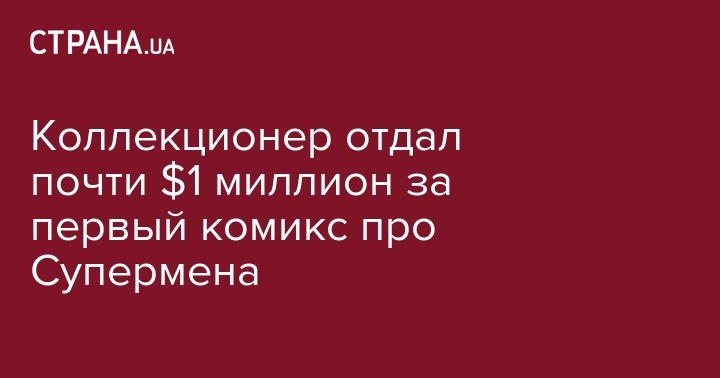 Редчайший экземпляр дебютного выпуска комиксов про Супермена 1938 года был продан на аукционе в США за $956 тысяч. Об этом сообщает Associated Press.