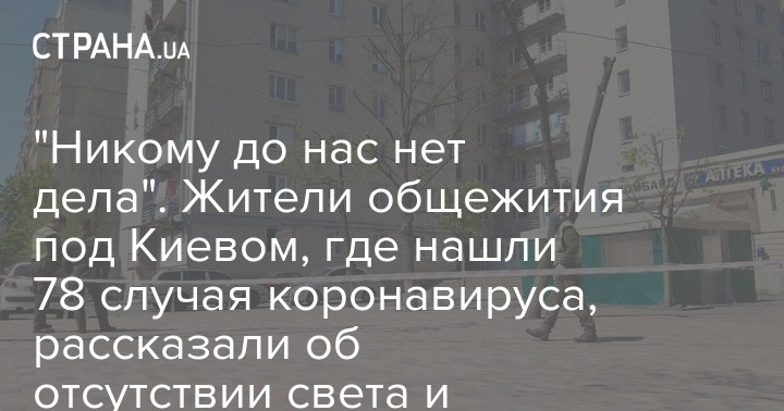 Возле общежития в городе Вишневом под Киевом, где уже у 78 из 224 проживающих обнаружили коронавирус, дежурят медики и нацгвардейцы. Между тем, местные жители рассказывают, что в некоторых комнатах нет электричества и горячей воды - люди не могут постирать вещи и нормально принять душ, несмотря на то, что этого требуют элементарные правила гигиены.