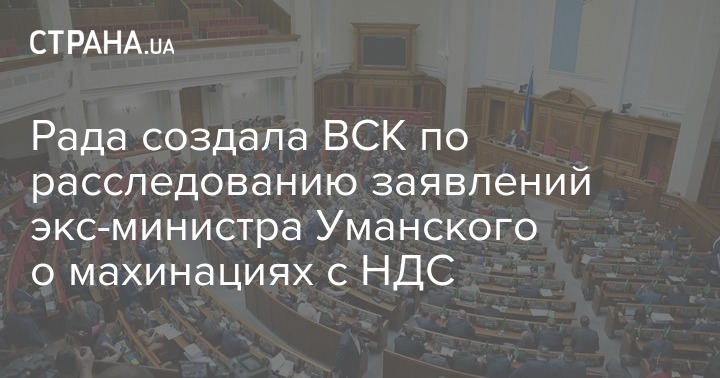 Рада создала ВСК по расследованию заявлений экс-министра Уманского о махинациях с НДС