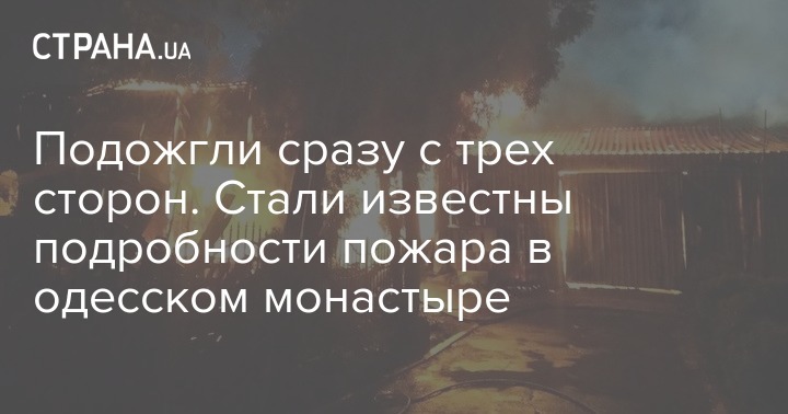 "То есть монастырь поджигатели атаковали с трех сторон. Они хорошо его знали. Есть видео наружной камеры, есть подозреваемый, который подбежал из подъехавшей машины. Мы постараемся быстро его найти", - пояснили "Стране" в одесской полиции.