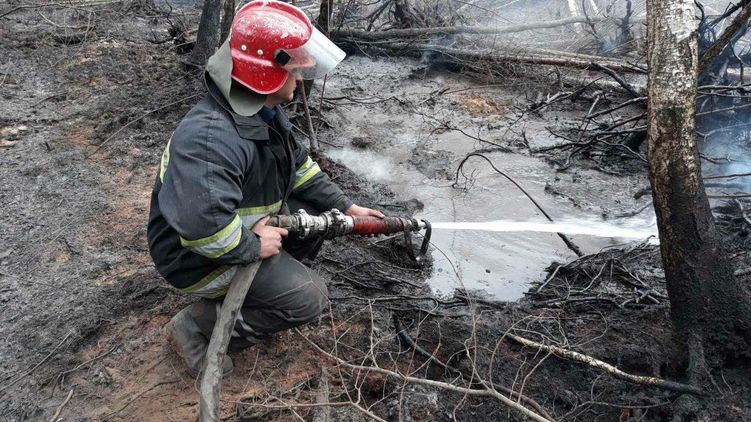По состоянию на воскресенье, 26 апреля, спасатели продолжают тушить лесные пожары в Житомирской области, несмотря на то, что в субботу по северу Украины прошли дожди. Там продолжают тлеть отдельные очаги травяного настила, пеньки и древесина.