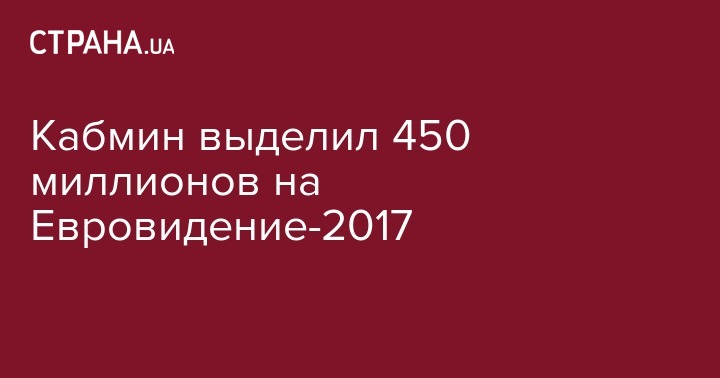 В понедельник, 8 августа Кабинет министров выделил 450 млн грн на проведение конкурса Евровидение 2017 в Украине. Об этом сообщает "Интерфакс Украина".