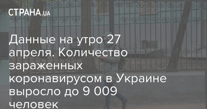 По состоянию на утро понедельника, 27 апреля, в Украине зафиксировано уже 9 009 случаев заражения коронавирусом Covid-19. Вчера, 26 апреля, этот показатель составлял 8 617 случаев. Новых случаев за сутки - 392.
