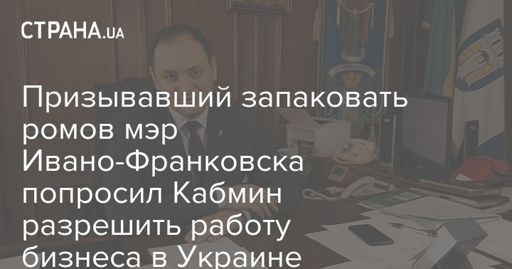 Призывавший запаковать ромов мэр Ивано-Франковска попросил Кабмин разрешить работу бизнеса в Украине