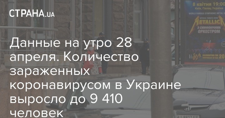 По состоянию на утро вторника, 28 апреля, в Украине зафиксировано уже 9 410 случаев заражения коронавирусом Covid-19. Вчера, 27 апреля, этот показатель составлял 9 009 случаев. Новых случаев за сутки - 401.