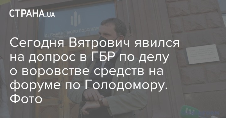 "Я сегодня здесь, вызван на допрос по еще одному делу, которое, очевидно, очень понравится Российской Федерации - делу организации Международного форума памяти жертв Голодомора в 2018 году. Я здесь для того, чтобы услышать, в чем злоупотребления власти в попытках рассказать Украине и миру правду о Голодоморе. Я здесь для того, чтобы понять, на что тратятся наши деньги в этой структуре, которая гордо называется Государственное бюро расследований", - сказал Вятрович журналистам перед допросом.