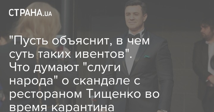 "У нас огромная фракция, где много людей и никто не похож на кого-то, поэтому у нас есть такой обычай: мы собираемся на заседании фракции и все выясняем. Такого не может быть, когда есть карантин для всех, а есть не карантин для других людей. Перед законом все равны, поэтому, если ресторан работал, то есть штрафы, за которые сам Николай тоже голосовал. Я, народный депутат, работаю в зале и на округе, я не должен знать, какой ресторан и где работает, вообще не знаю, какие рестораны у господина Тищенко, мне это неинтересно. У нас есть чат, в нем есть реакция на то, что случилось, уверен, что руководство фракции поднимет этот вопрос и будет принято какое-то решение, а, если действительно нарушен закон, то пусть будет наказан нормами, которые прописаны в законодательстве. Каждый человек влияет на рейтинг партии, но это базируется не только в медиа, это базируется на общение депутата в округе, потому что мажоритарка – это отношение людей к округу и депутату".