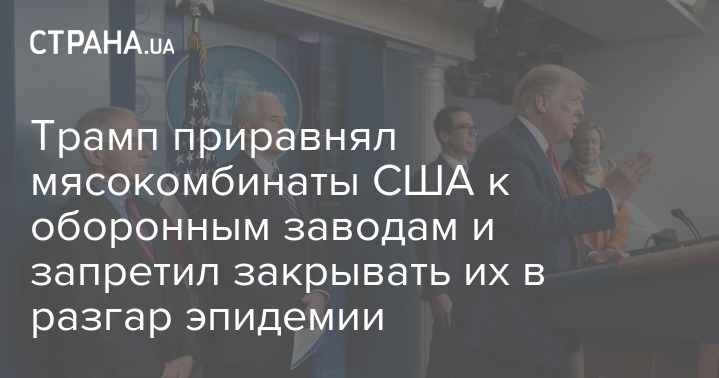 Президент Дональд Трамп пошел на очередной шаг, что бы смягчить последствия эпидемии коронавируса для экономики США и социума. Глава Белого дома подписал указ со ссылкой на закон об оборонном производстве, которым мясоперерабатывающим заводам предписано оставаться открытыми во время эпидемии Covid-19.
