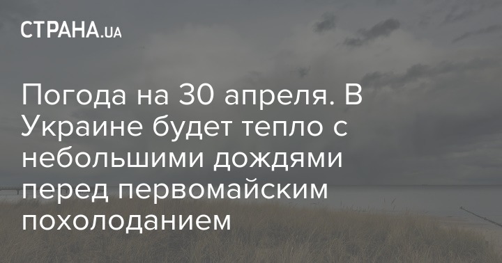 Апрель в Украине завершится дождями и грозами на западе и севере, теплом в центральных областях с температурой воздуха до +20...+25 градусов, похолоданием на юге (местами +12...+14 градусов) и в западных областях, где сегодня, 30 апреля, будет +16...+19 градусов.