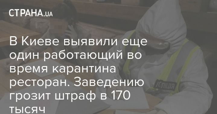 Киевские полицейские выявили в столице еще один ресторан, который как и принадлежащий нардепу Николаю Тищенко "Велюр", работал во время карантина. Заведение расположено в Голосеевском районе Киева.