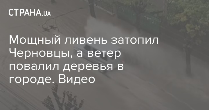 Мощный ливень затопил Черновцы, а ветер повалил деревья в городе. Видео