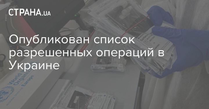 Кабмин опубликовал список разрешенных во время карантина, который продлили до 22 мая, медицинских операций. Об этом идет речь в постановлении №332 от 4 мая "О внесении изменений в пункт 8 постановления Кабинета министров Украины от 11 марта 2020 №211", опубликованное на правительственном портале.
