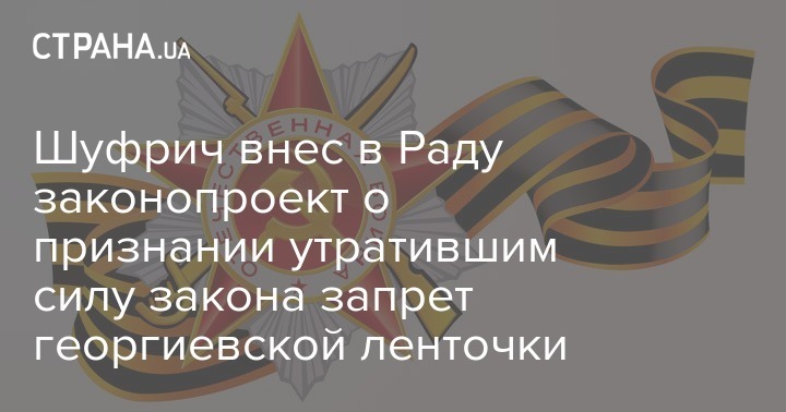 Народный депутат из фракции "Оппозиционная платформа - За жизнь" Нестор Шуфрич внес в парламент законопроект о георгиевской ленточке. В нем предлагается признать утратившим силу закон о запрете производства и пропаганды георгиевской ленты, принятый Радой в мае 2017 года.
