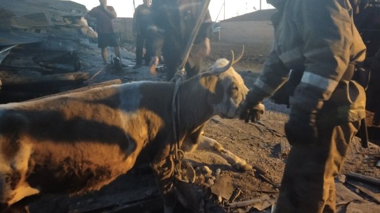 Появилось видео, как спасатели вытаскивают коров из-под завалов на ферме в Челябинской области