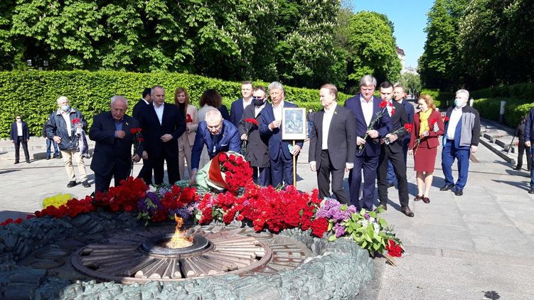 Нардепы от "Оппоплатформы" пришли возложить цветы к Вечному огню. Фото: Страна