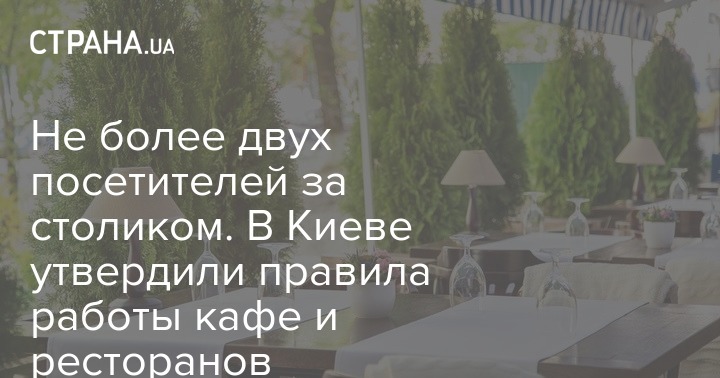 Не более двух посетителей за столиком. В Киеве утвердили правила работы кафе и ресторанов