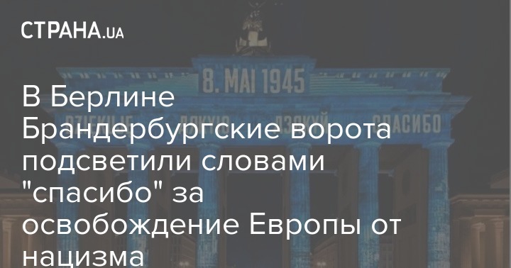 В Берлине Брандербургские ворота подсветили словами "спасибо" за освобождение Европы от нацизма
