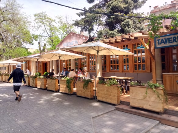 14:56 В одесских заведениях уже полно народу. Сидят большими компаниями.