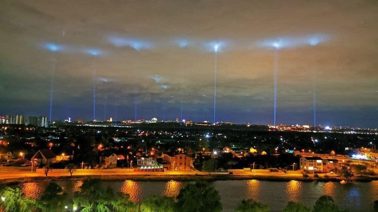 Украинские деятели культуры в знак протеста против запрета на массовые собрания, введенного в рамках борьбы с коронавирусом в Украине направили в небо мощные лучи света.