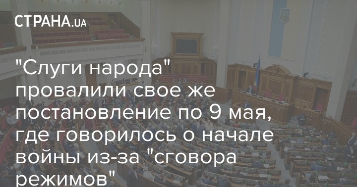 Верховная Рада Украины, сегодня, 13 мая, не приняла проект постановления, согласно которому, вина за начало Второй мировой возлагается на Советский Союз и гитлеровскую Германию в равной степени. Свои голоса за документ №3431 отдали всего 200 народных депутатов, из которых "Слуги народа" - всего 128 голосов.
