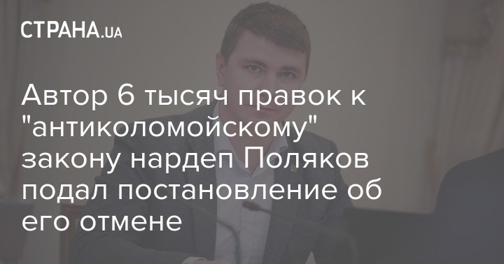 Автор 6 тысяч правок к "антиколомойскому" закону нардеп Поляков подал постановление об его отмене