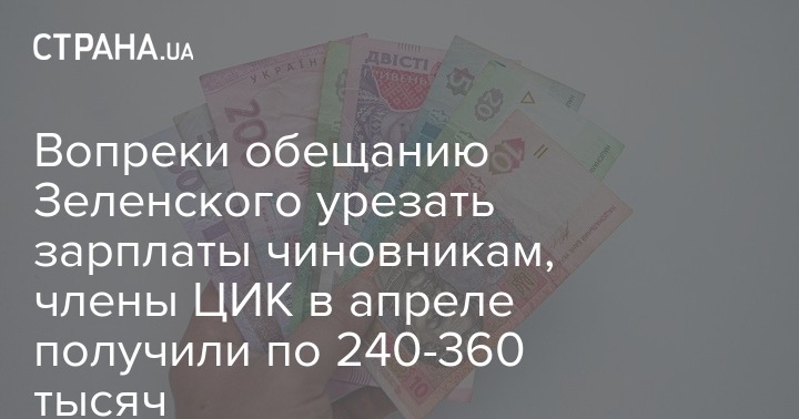 Вопреки обещанию Зеленского урезать зарплаты чиновникам, члены ЦИК в апреле получили по 240-360 тысяч
