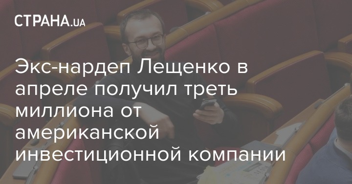 Экс-нардеп, член наблюдательного совета акционерного общества "Укрзализныця" Сергей Лещенко, которому за неполных 4 месяца "Укрзализныця" выплатила уже более миллиона гривен, в апреле получил 323 011 грн от американской компании по управлению инвестициями Eaton Vance Corp.