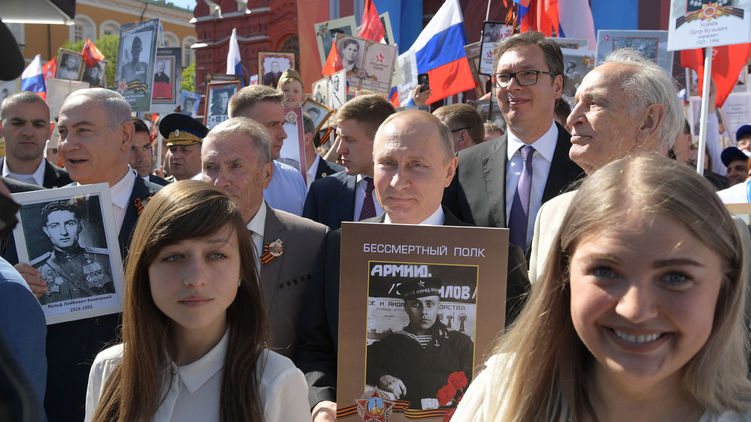 В России, где на репетиции парада к 9 Мая коронавирусом заразились сотни военных, были задержаны четверо человек, которые на онлайн-акции "Бессмертный полк" разместили фотографии лидеров нацистской Германии - Адольфа Гитлера и Генриха Гимлера.