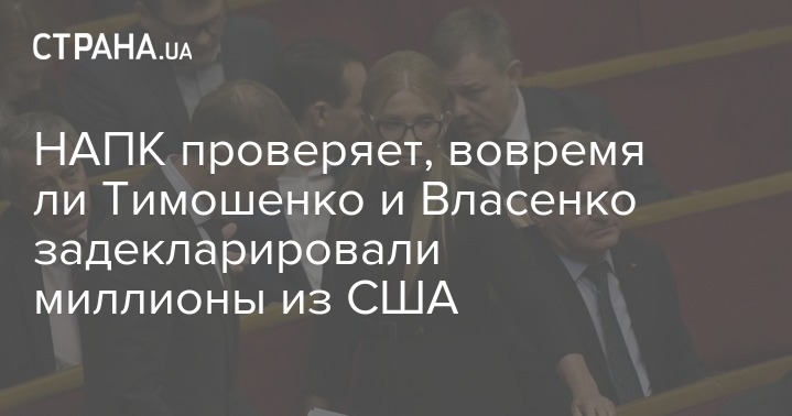 НАПК проверяет, вовремя ли Тимошенко и Власенко задекларировали миллионы из США